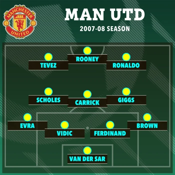 Ekipi përfshinte gjithashtu portierin Edwin van der Sar, dyshen e qendër mbrojtjes Rio Ferdinand dhe Nemanja Vidic, ndërsa Paul Scholes dhe Ryan Giggs vazhduan të drejtonin ekipin.