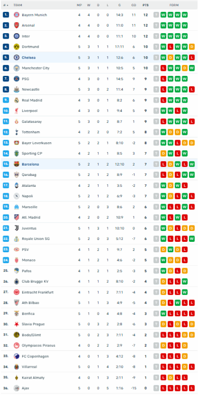 Në anën tjetër, Barcelona rrezikon të përfundojë në pozitat e play-offit për të siguruar kualifikimin në fazën me eliminim direkt. /Rekordi.net